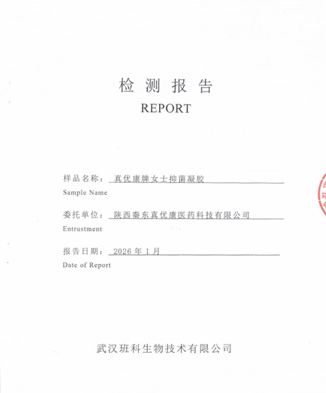 Испытательное подтверждение продукта женский антибактериальный гель «Чжэнюкан»® компанией Ухань Банькэ: