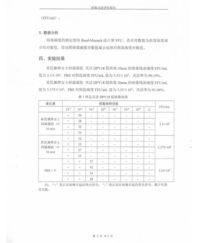 Женский антибактериальный гель «Чжэнюкан»® показал уровень инактивации вируса ВПЧ18 в 91,06% за 10 минут.